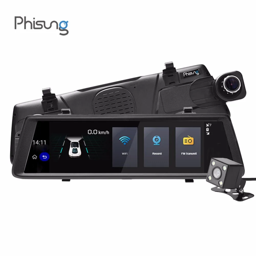 Goede Koop Phisung V6 Auto DVR 10in Touch Remote Monitor Achteruitkijkspiegel met DVR Camera Android Dual Lens 1080 p WIFI dash Cam Goedkoop